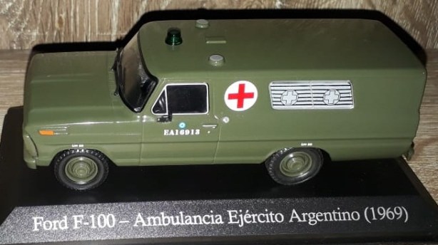Bom, na mesma caixa junto com as carreteras veio uma peça incrível: Ford F100 1969 Ambulância do Exército Argentino na escala 1/43 da coleção Autos Inolvidables de Reparto y Servicio. Esse modelo é sensacional e forma uma dupla belíssima com outra ambulância da mesma coleção, a Dodge D100 1967.